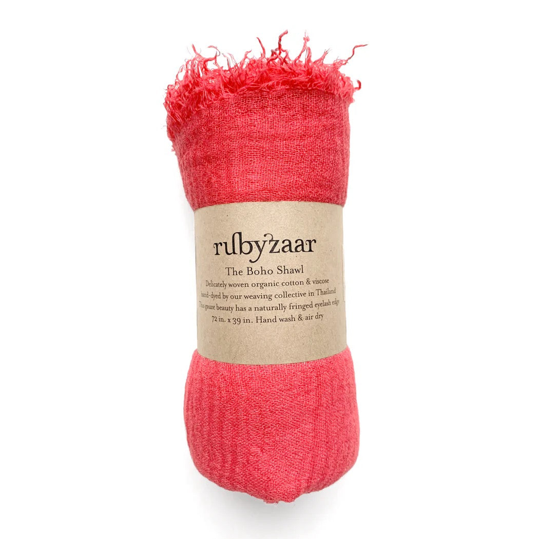 Our best selling bohemian style scarf is the perfect accessory for any occasion. Buttery soft and fabulous. Delicately woven cotton & viscose scarf. Hand dyed in Thailand. This gauze beauty has a naturally fringed eyelash edge.