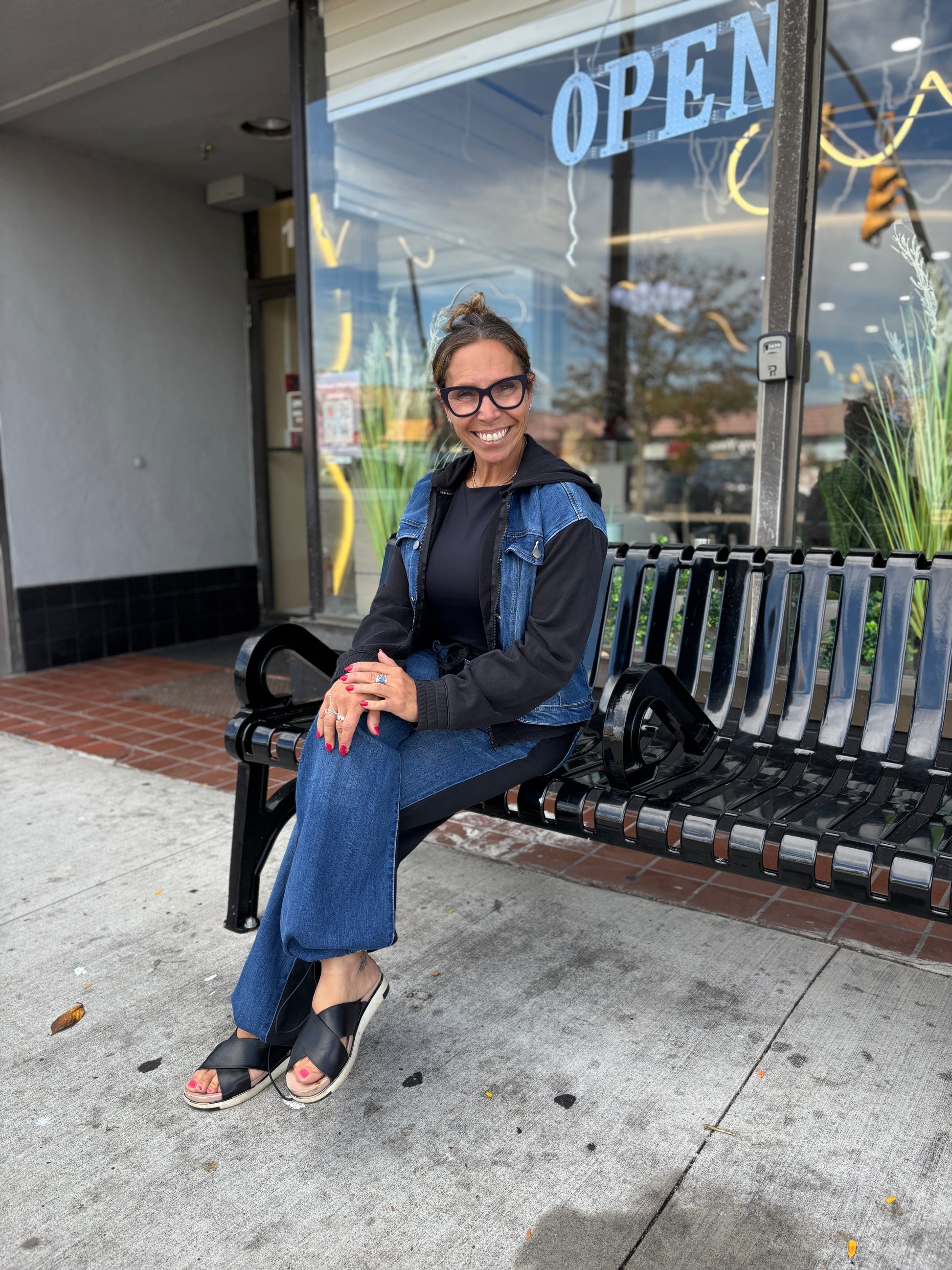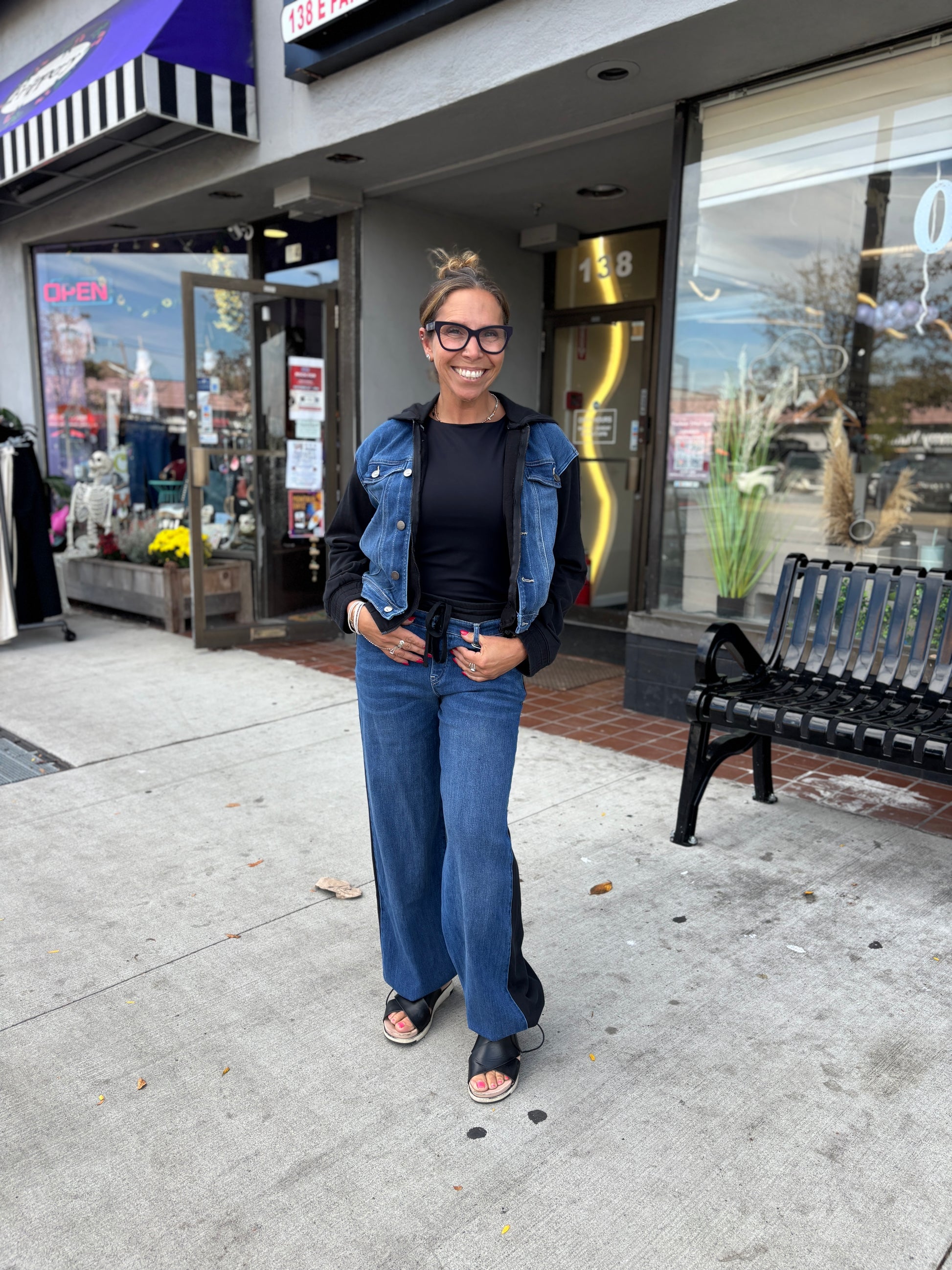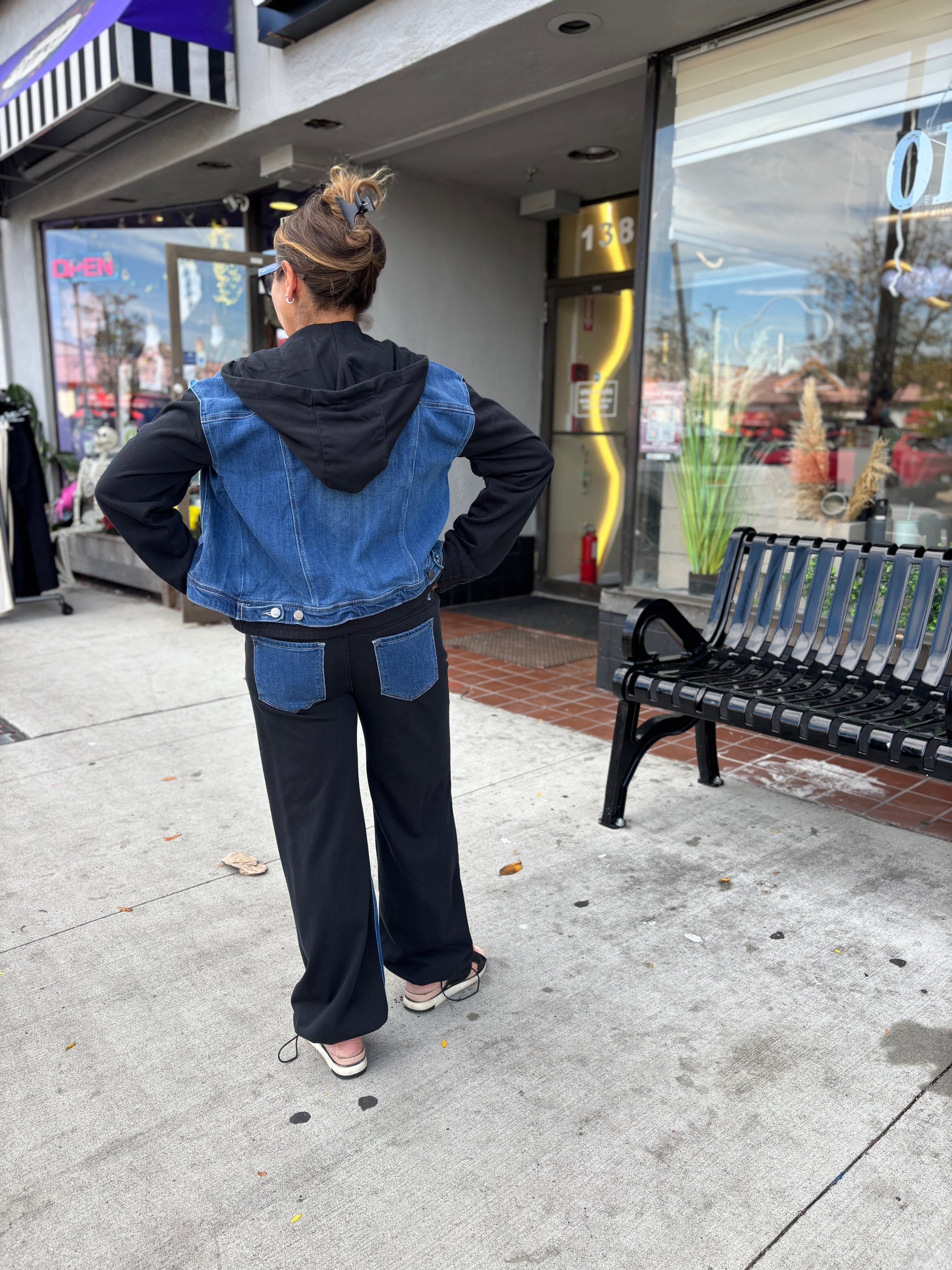 This Denim French Terry Combo Wide Leg pants combine denim and French terry materials for versatile styling options.